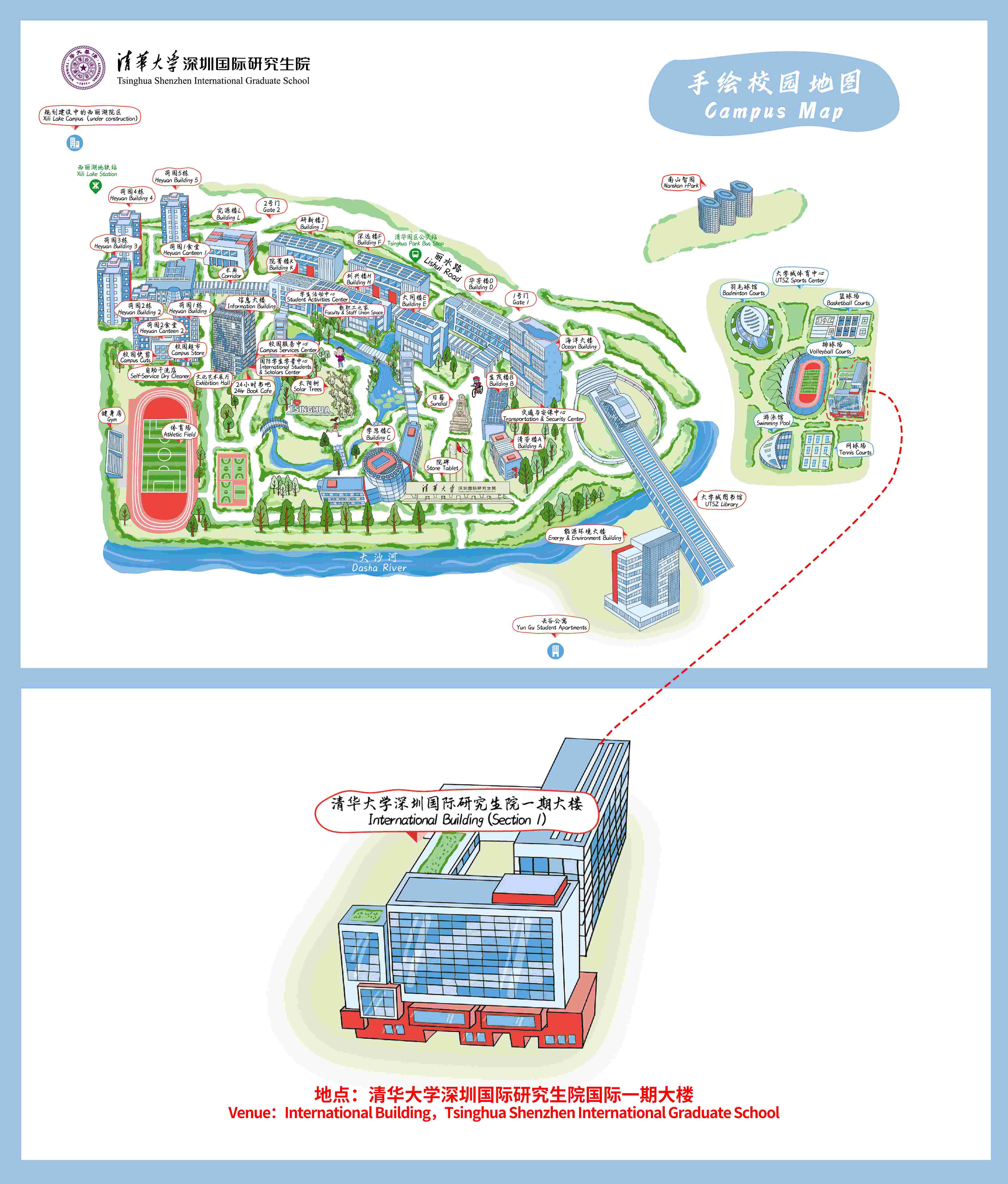 The closest metro station to Tsinghua SIGS is Xili Lake (西丽湖) on Line 7. Take Exit D and follow the road 200m to the campus’s side gate, or 500m to reach the north gate, both on the right. To learn more about Shenzhen’s metro system, visit their official website at http://www.szmc.net/page/eng/index.html. Additionally, you can use SZMC’s interactive map to plot routes and calculate fares from all major access points to Shenzhen (airport, train station, border crossings), available here.