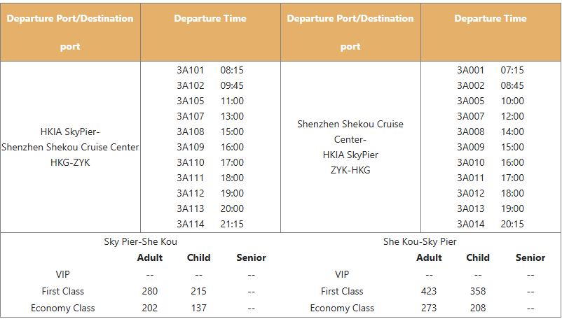 Ferry Timetable from Hong Kong Airport to Shekou Cruise Homeport